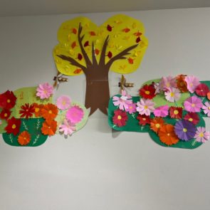 ☆秋の製作☆ かわいいどんぐりボウヤをつくりました♪ ☆総合運動公園に行ったよ☆ コスモスが満開で子どもたちも「キレ……